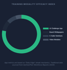 App metrics are based on “Daily Edge” streak mechanics. Traditional data sourced from Gartner/PwC Workforce Reports (2025).
